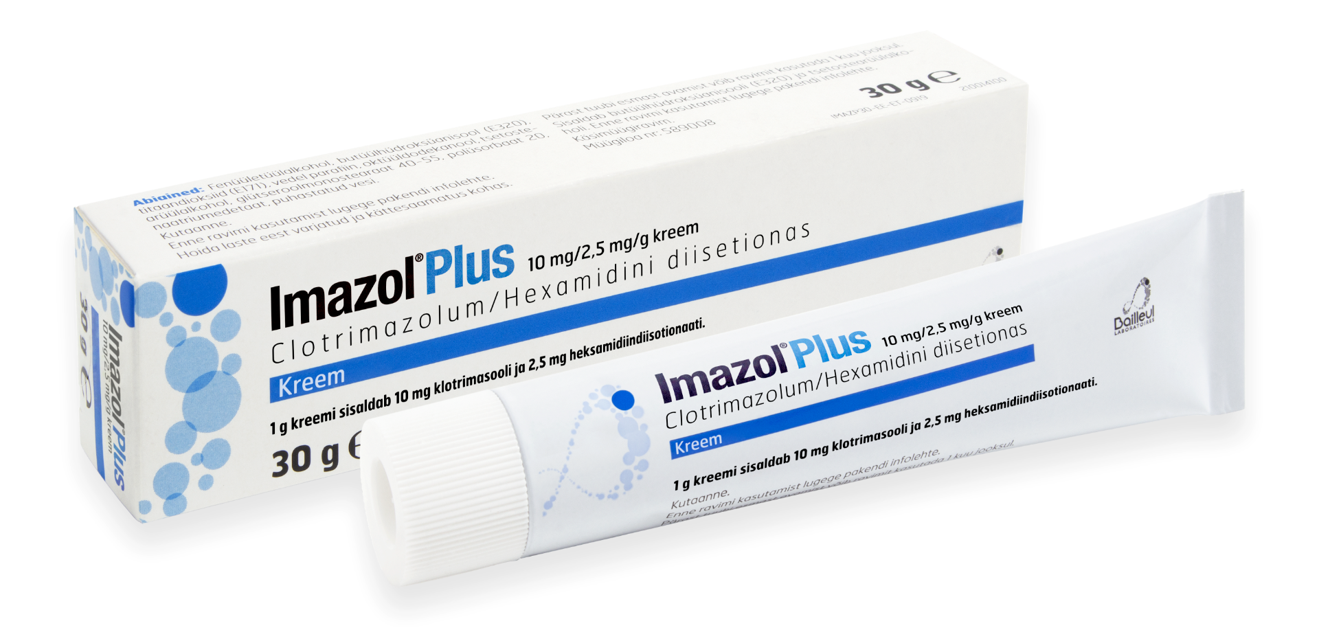 Imazol® Plus /klotrimasool+heksamidiin/ kreem 10mg+2,5mg 30g on ainukene uue generatsiooni seeneravim, mis sisaldab korraga kahte toimeainet: klotrimasooli ja heksamidiini.