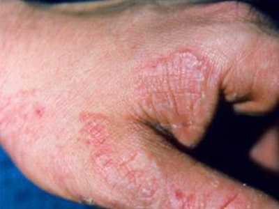 Nahk on kuiv ja kare, peopesa nahavagudes on näha peenehelbeline jahujas valkjas ketendus.